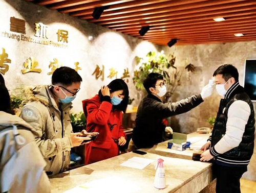 金皇環(huán)保疫情防控領(lǐng)導(dǎo)小組堅(jiān)持貫徹“寧可十防九空,不可失防萬一”的理念,切實(shí)做好體溫檢測(cè)、工作場(chǎng)所通風(fēng)消毒、午餐監(jiān)督與配送等工作,將所有設(shè)想到的細(xì)節(jié)逐一落實(shí)。公司黨總支也帶領(lǐng)廣大黨員干部及團(tuán)員青年做“新冠時(shí)期的守護(hù)者”。