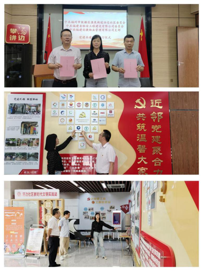 為深入學習貫徹習近平新時代中國特色社會主義思想和黨的二十大、黨的二十屆三中全會精神,切實推動精神文明創(chuàng)建和單位文化建設,構建基層黨組織共建、各方黨員參與、共同提升黨建工作水平的新格局,經各方黨組織協商一致,中共福建省輕安工程建設有限公司委員會、中共福州市鼓樓區(qū)溫泉街道湯邊社區(qū)委員會、中共福建安捷物業(yè)管理有限公司支部于2024年9月27日上午在溫泉街道湯邊社區(qū)簽訂三方黨建共建協議,正式結成黨建工作聯盟單位。