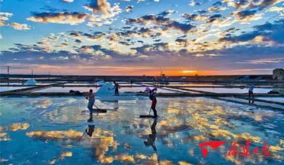 (夕陽(yáng)下福建海鹽鹽田金輝熠熠)
